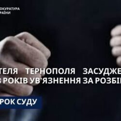 Тернопільський міськрайонний суд визнав винним місцевого жителя у вчиненні розбою та призначив йому покарання у вигляді 8 років позбавлення волі.