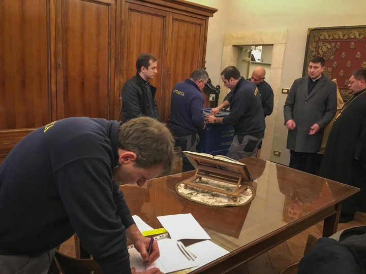 Нерукотворний Образ Христа в середу 8 лютого у Ватикані запакували в спеціальний контейнер і відправлятимуть на Тернопільщину. Святиня перебуватиме в Україні з благословення Папи Франциска та архиєпископа і митрополита Тернопільсько-Зборівський Василя Семенюка. Поводитимуться зі святинею дуже обережно, адже для ікони мають бути дотримані особливі умови.