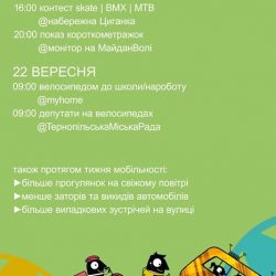 У Тернополі проведуть традиційний “Європейський тиждень мобільності”. Подія триватиме з 16 по 22 вересня. На активних жителів міста чекають велоекскурсії,