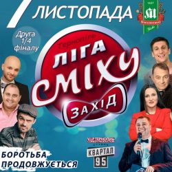 У Тернополі 7 листопада відбудеться друга 1/4 фіналу “Ліги сміху Захід”. Про це повідомляють організатори. “БОРОТЬБА ПРОДОВЖУЄТЬСЯ! 7 ЛИСТОПАДА! ПК