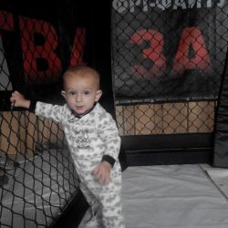 Дружина відомого тернопільського “кіборга” Валерія Чоботаря Леся Чоботар поширила у Facebook фото їхнього синочка, зроблене в залі для занять фрі-файтом.