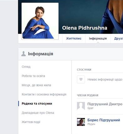 На сторінці Підгрушної інформації про сімейні відносини немає.