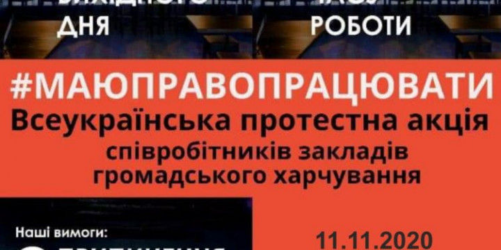 11 листопада у Києві відбудеться Всеукраїнська акція-протест “Маю право працювати”, організаторами якого є представники ресторанного бізнесу. Працівники закладів громадського харчування вимагають скасування “карантину вихідного дня” та обмеження часу у роботі. Об’єднання рестораторів Тернополя долучається до акції. Збір усіх охочих оголошено на 10:00 годину 11 листопада біля Тернопільської облдержадміністрації.