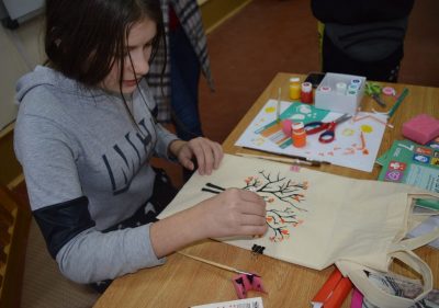 У Збаразькій санаторній школі-інтернаті підтримують різноманітні природозберігаючі ініціативи. А тому діти вирішили спробувати перетворити просту бавовняну торбинку на унікальний витвір ручної роботи. А допомагали їм у цьому бібліотекар школи О. В. Суха та вчитель основ здоров’я Т. Б.Кухарська.