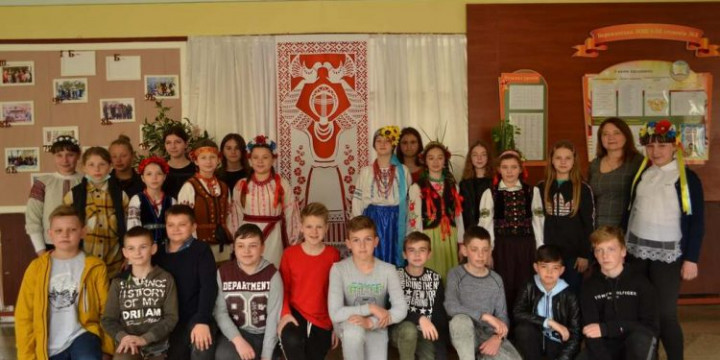На презентацію панно були запрошені місцеві школярі, з якими провели народознавче заняття «Без сім’ї і свого роду – немає нації, народу».