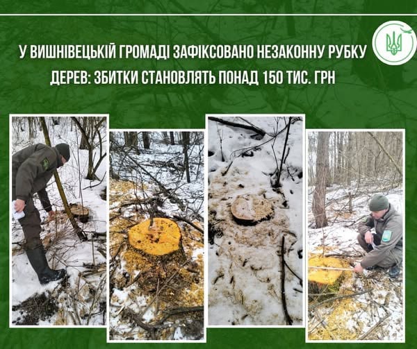 Під час обстеження на території Вишнівецька територіальна громада, за межами села Котюжини, на земельній ділянці лісогосподарського призначення інспектори зафіксували факт незаконної порубки 35 дерев. Сума шкоди, заподіяної лісу, становить 151 036,68 грн.