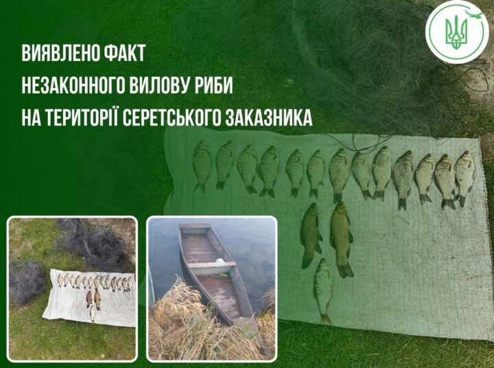 Порушення зафіксували в межах гідрологічного заказника загальнодержавного значення «Серетський». Чоловік здійснював вилов водних біоресурсів із використанням заборонених знарядь – двох ставних сіток.