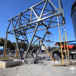 На вул. 15 Квітня у Тернополі, біля «Збаразького кільця», триває будівництво надземного пішохідного мосту. Задля якісного виконання робіт, тут часково