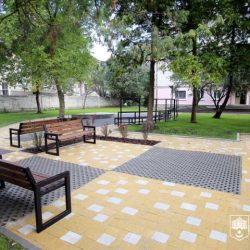 У сквері на вулиці C.Качали, 1 завершується облаштування культурно-відпочинкової зони «Комплексне трансфер-містечко». У трансфер-містечку проводитимуть заняття із дітьми з інвалідністю. Тут