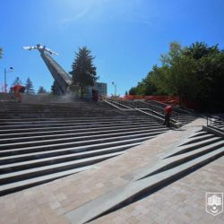 На вході у парк «Національного Відродження» зі сторони проспекту С. Бандери завершуються ремонтні роботи. Тут відремонтували сходи та влаштувати пандус.