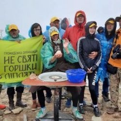 Митці вийшли на Говерлу, не зважаючи на вітер та дощ. Крім того, у підніжжя розібрали гончарний круг, вагою 70 кілограм,