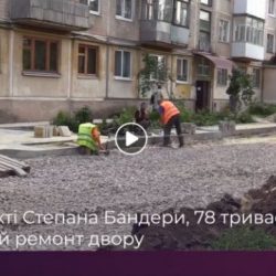 У дворах міста тривають ремонтні роботи. Зокрема капітально оновлюють прибудинкову територію на проспекті Степана Бандери, 78.
