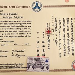 Тетяна Чубата з Тернополя стала новим Бранч-чіфом кіокоушин-кан в Україні. Спортсменка місяць тому отримала сертифікат і карта Бранч-Чіфа з Хонбу