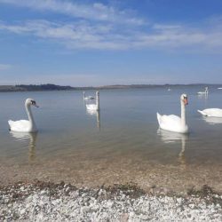 У селі Залізці Тернопільського району з’явилися нові пернаті мешканці. Лебеді оселилися на місцевому ставку. Фотографією білих красенів поділився Василь Ільчишин.