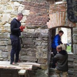 Нещодавно на замку працював волонтерський загін громадської організації «Centuria». Це організація, членами якої в основному є ветерани добровольчих підрозділів. Подорожуючи