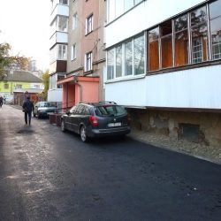 У дворі будинку на вул. Котляревського, 39а уже оновили проїжджу частину та влаштували бордюри. Зараз триває ремонт пішохідної доріжки. Також