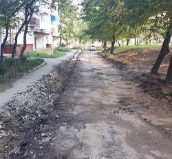 На вулиці Київській, 12 у Тернополі триває ремонт двору. На даній території уже демонтували бордюри. Двір входить до титульного списку