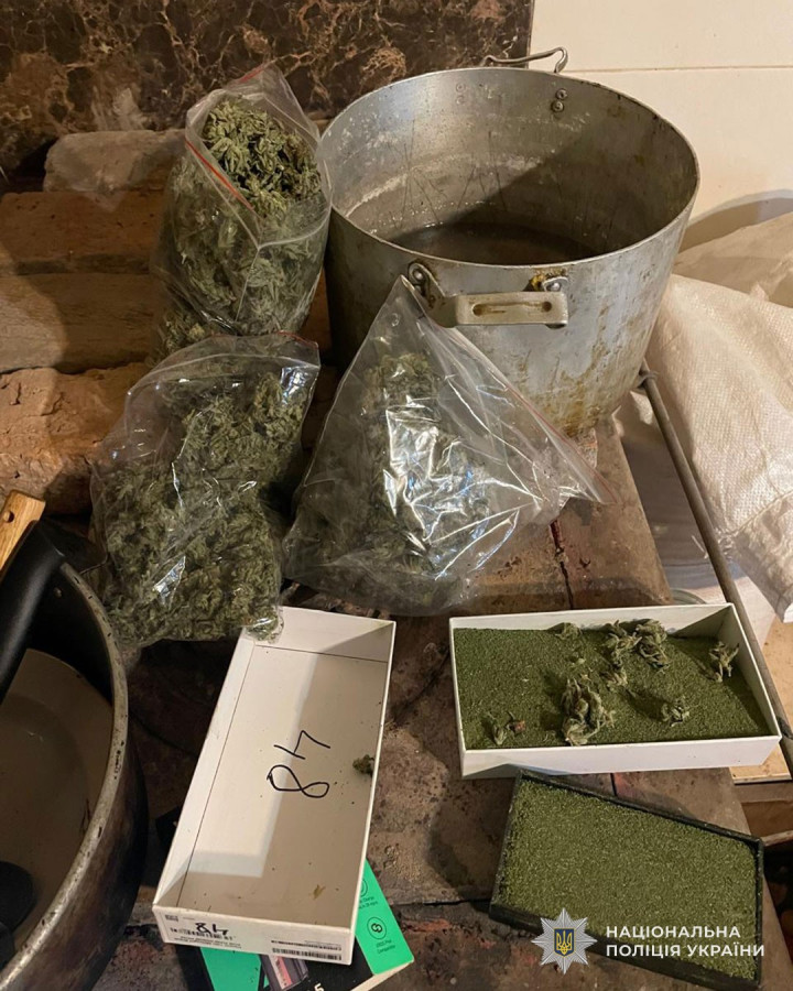 Під час санкціонованого обшуку в оселі фігуранта поліцейські вилучили майже пів кілограма подрібненої речовини зеленого кольору, а також суцвіття рослин, зовні схожих на коноплі. Усі вилучені речові докази направлено на експертне дослідження.