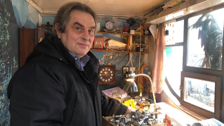 Тут хаотично і голосно цокають стрілки годинників, навіть коли не прислухатися. Годинників дуже багато. Є великі настінні, є будильники, є наручні і майже всі родом з минулого століття. Тепер таких не випускають, каже годинникар Віталій Софіянчук, який залишився у своїй професії єдиним у місті, і вже майже сорок років ремонтує годинники в своїй маленькій майстерні у Кременці.
