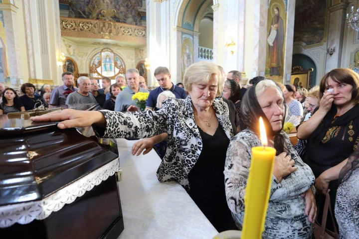 Тисячі тернополян сьогодні прийшли до Архикатедрального собору Непорочного Зачаття Пресвятої Богородиці, щоб віддати останню шану загиблому Володимиру Стаюрі.