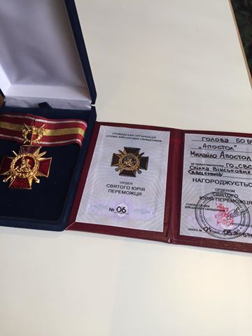 Екс-нардепа з Тернопільщини, а нині – радника Міністра внутрішніх справ Арсена Авакова Михайла Апостола нагородили Орденом Святого Юрія Переможця.