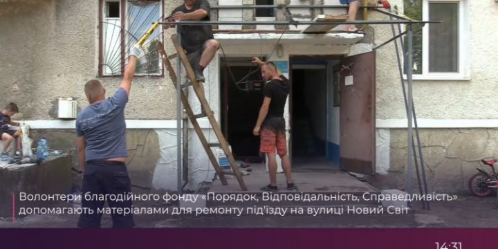 Волонтери БФ «Порядок, Відповідальність, Справедливість» допомагають матеріалами для ремонту під’їзду на вулиці Новий Світ.