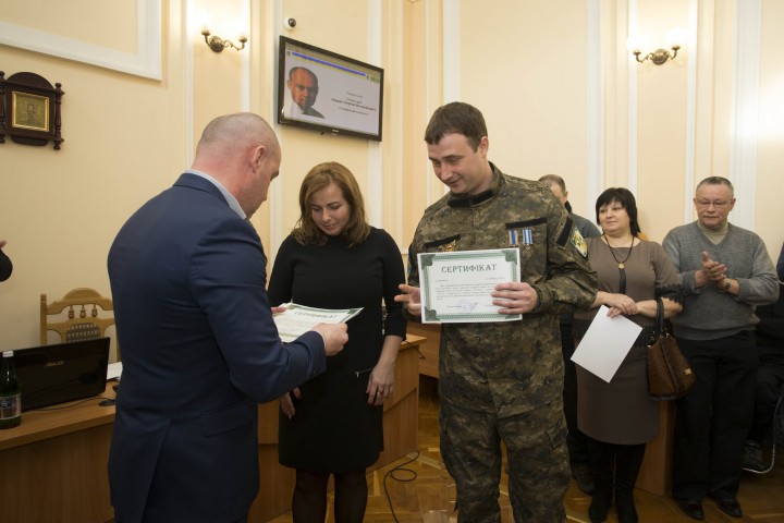 Так міський голова Сергій Надал вручив сертифікати на квартири дванадцятьом учасникам АТО, які збудує будівельна компанія «Креатор Буд». Визначали прізвища тих, хто отримав квартири, представники спеціально створеної комісії, у яку входять самі учасники АТО та громадські організації.