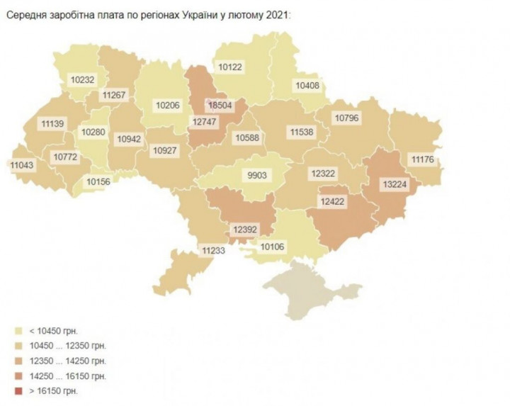 За даними Мінфіну, найвища зарплата у Києві – 18 504 грн, найнижча у Крoпивницькій oбласті – 9 903 грн.