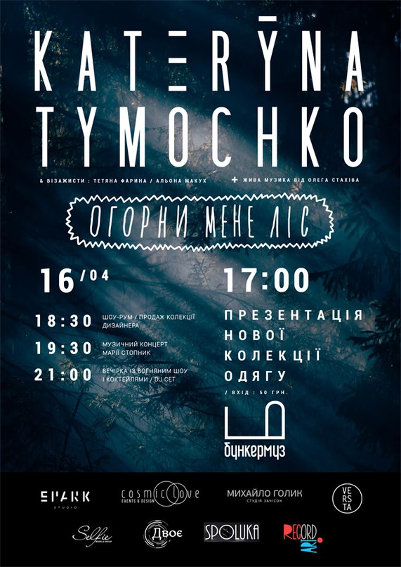 лісУ Тернополі 16 квітня відбудеться довгоочікувана подія – презентація нової колекції одягу Катерини Тимочко під назвою “Ліс”. На відвідувачів чекатиме не лише показ одягу, а справжнє театралізоване дійство.