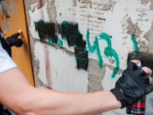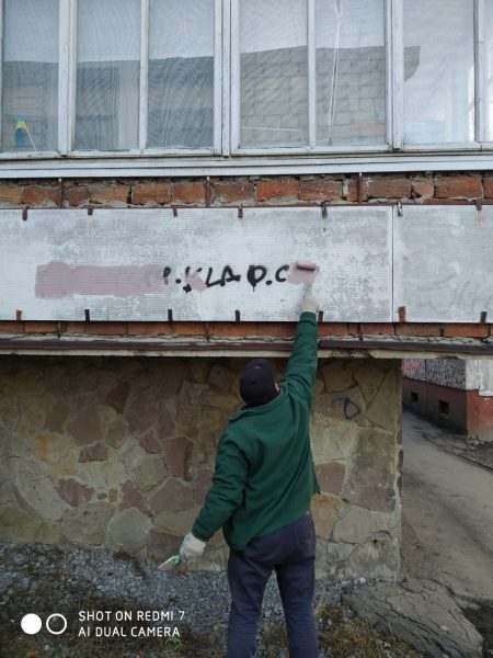 Працівники ПП “Сонячне” проводять ліквідацію графіті, які залишають торговці наркотиками.