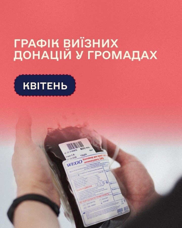 Тернопільський центр крові оприлюднив графік виїзних донацій на квітень