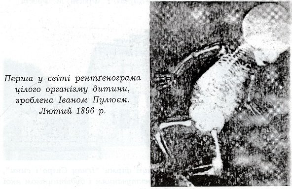 Ще за 14 років до створення рентгену німцем Вільгельмом Рентгеном, українець Іван Пулюй сконструював трубку, що стала прообразом того, що ми можемо бачити зараз. Саме Пулюй ВПЕРШЕ зробив ренгенівський знімок тіла людиин.