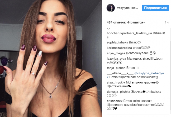 Фотографію із обручкою дівчина опублікувала на сторінці у Instagram