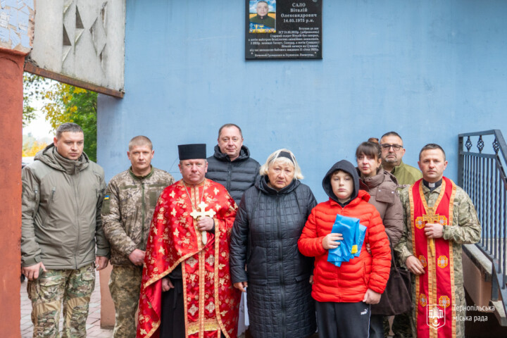 У Тернополі на фасаді будинку на вулиці Мирона Тарнавського, 5 відкрили меморіальну дошку на честь Віталія Сала — старшого солдата, який загинув, захищаючи Україну.