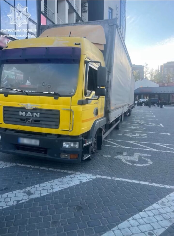 Інцидент стався на вулиці 15-го Квітня. Водій вантажного автомобіля MAN припаркувався одразу на кількох паркомісцях, призначених для осіб з інвалідністю.