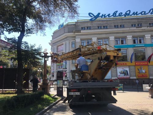На Театральному майдані у Тернополі оновлюють вуличне освітлення.