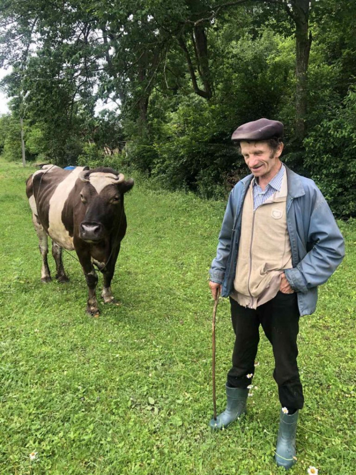 Його ми застали на пасовищі. Тут хуторянин щодня пасе свою корівку, яку доглядає вже багато років.