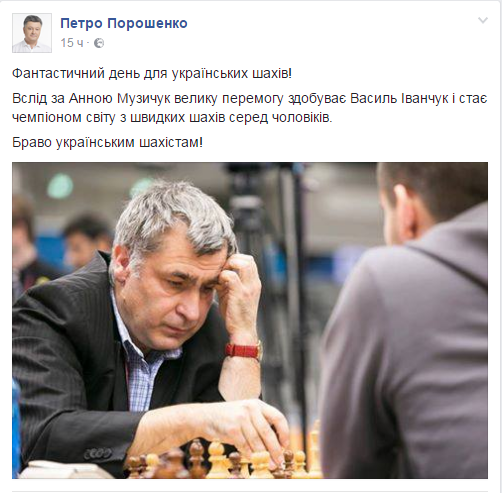 Шахіста вже привітав на сторінці у Facebook Президент України Петро Порошенко: