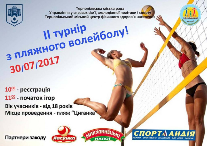 Тернопільський міський центр фізичного здоров’я населення не забуває про любителів гри над сіткою, які віддають перевагу пляжному волейболу. Черговий турнір для них у чарівній місцині для відпочинку на набережній Тернопільського ставу відбудеться найближчої неділі, 30 липня.