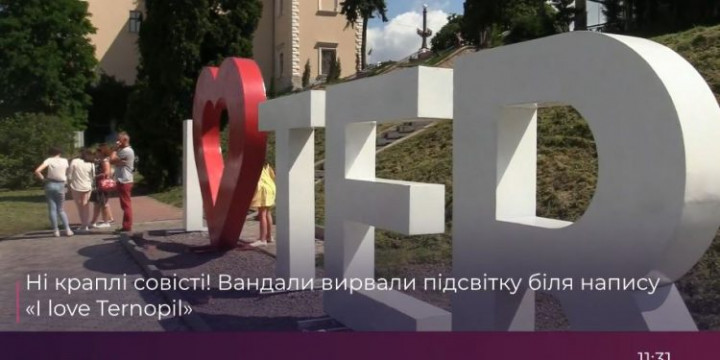 Вандали понищили усі елементи освітлення біля напису “Я люблю Тернопіль”, що у парку Тараса Шевченка.