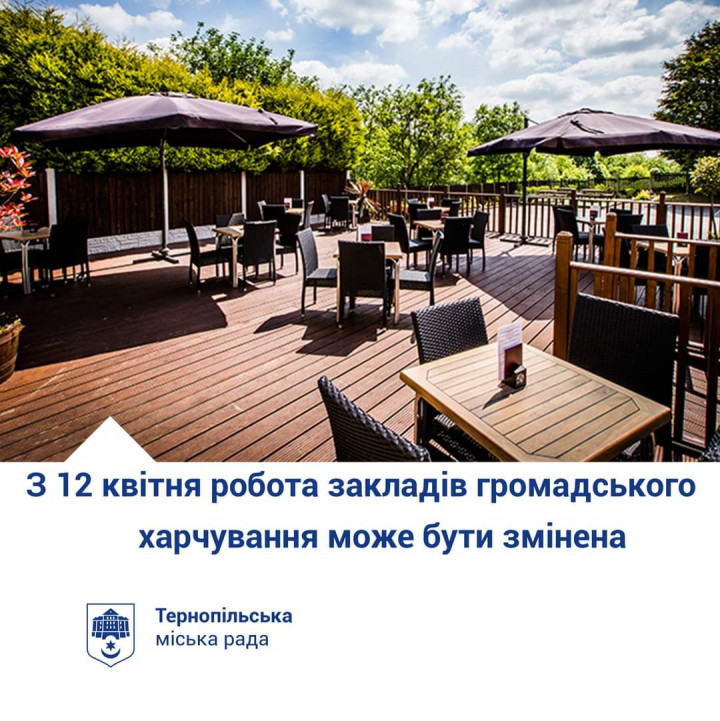У разі погіршення епідситуації у Тернополі, з 12 квітня 2021 закладам громадського харчування буде заборонено приймати відвідувачів у приміщеннях.