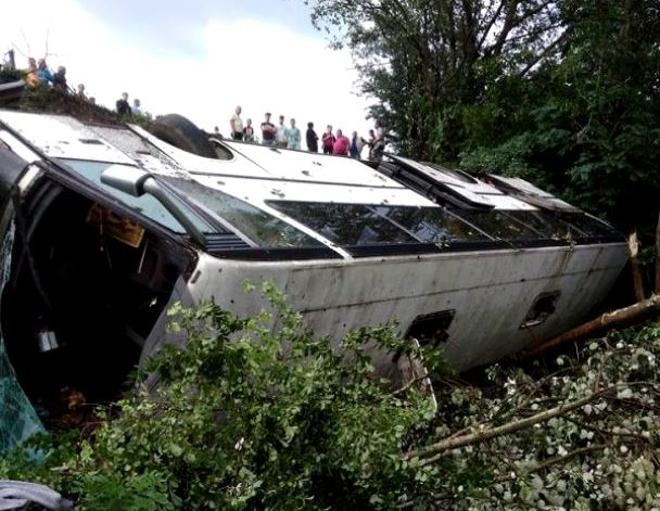 На Тернопільщині злетів в урвище автобус із 45 людьми.