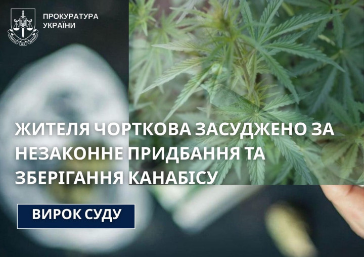 За публічного обвинувачення прокурорів Чортківської окружної прокуратури суд визнав чоловіка винним у незаконному придбанні та зберіганні наркотичного засобу без мети збуту, вчинених протягом року після попереднього засудження.