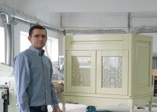— Нині ми заінвестували у наше виробництво доволі великі кошти, — розповідає Андрій Біскупський, — викупили половину старого столярного цеху у Чистилові, тобто переїхали ближче до Тернополя. Три місяці тривав капітальний ремонт і ось уже два місяці, як ми туди переїхали. Умови створили належні, адже якщо людина працює в гарних умовах, то і віддача праці більша. Нині у нас четверо працівників, я — п’ятий. Заплановано, що у нашому новому приміщенні площею 500 кв. м будуть працювати вісім робітників, тож нині ми у пошуку кадрів. Оскільки ми робимо елітні меблі, то у їх виробництві не може бути задіяний будь-хто, для цього потрібен немалий досвід.